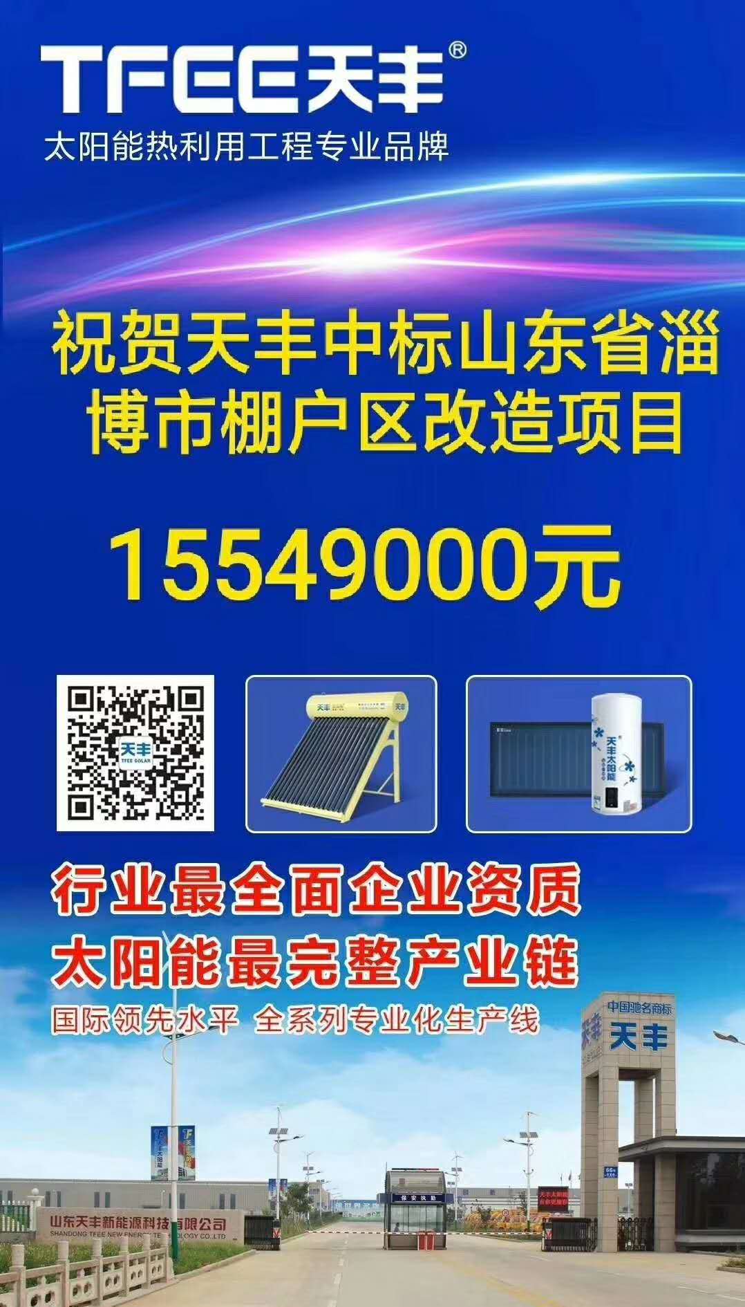 在太陽(yáng)能熱水器行業(yè)的大河中,天豐人始終保持著“咬定青山不放松”的執(zhí)著,胸懷著“越是艱險(xiǎn)越向前”的膽魄。值此國(guó)慶佳節(jié)來(lái)臨之際,工程部傳來(lái)捷報(bào):天豐太陽(yáng)能中標(biāo)淄博經(jīng)開(kāi)棚戶區(qū)1500余萬(wàn)元的改造項(xiàng)目。(慶祝的表情)(捷報(bào)照片)