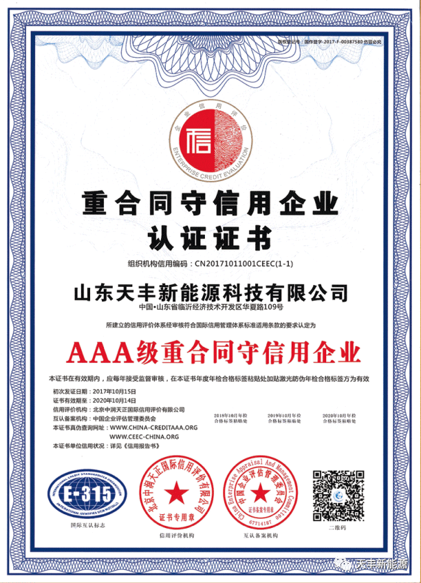 以品質保障,為誠信護航!早在2017年,天豐榮譽國家“重合同守信用企業認證證書”,躋身國家3A級重合同守信用企業陣營,榮譽背后是對品質的高度認可。目前天豐產品遠銷世界多個國家地區,在國內國外市場均享有很 高的品牌美譽度與知名度,這也是經銷商選擇天豐、客戶選擇天豐的首要原因。